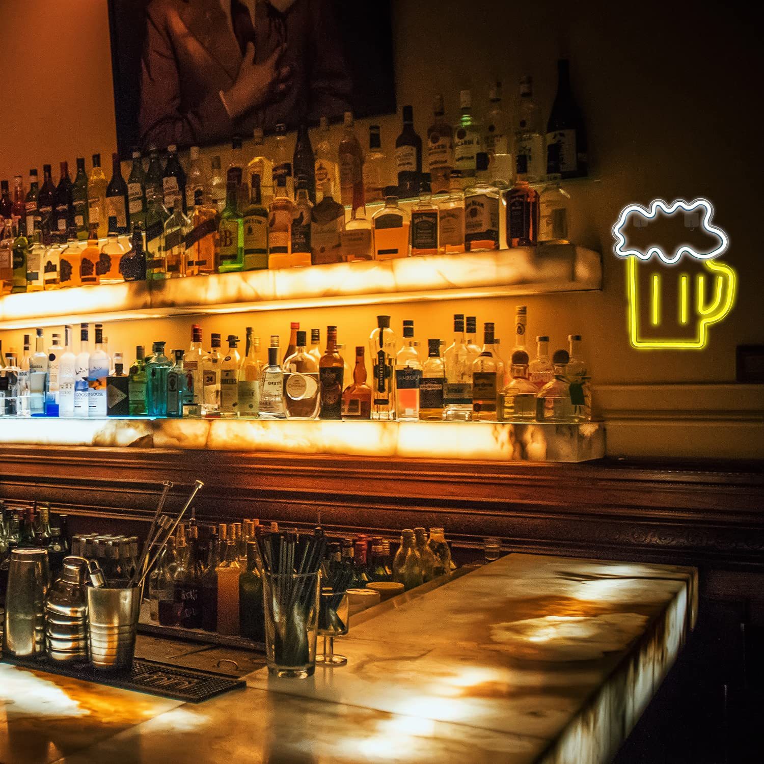 - Soft neon-like lighting